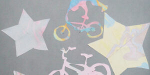 今回は、マーブリングで造った紙を利用して、作品を作りました。 …