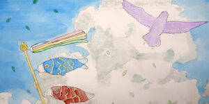 「夢」をテーマに水彩画を描きました。将来の夢、寝てる時に見た …